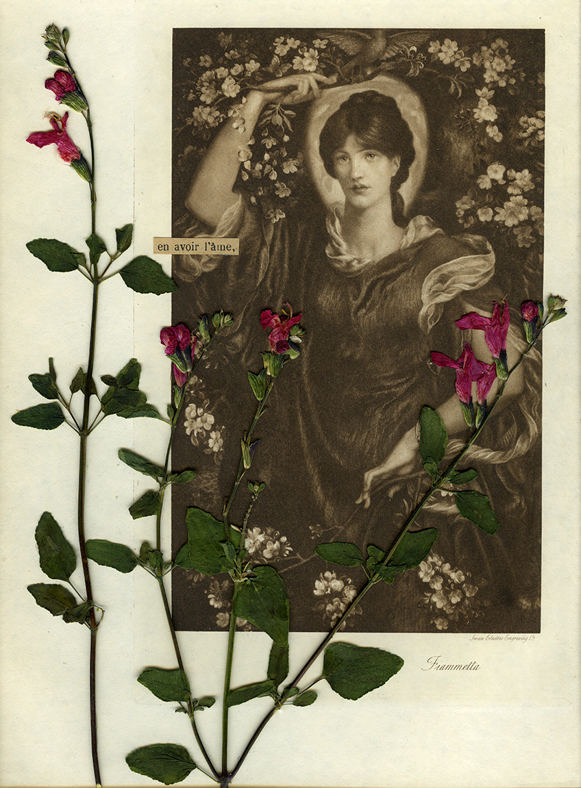 Herbier contemporain Collage de fleurs séchées, gravure originale et mots chinés