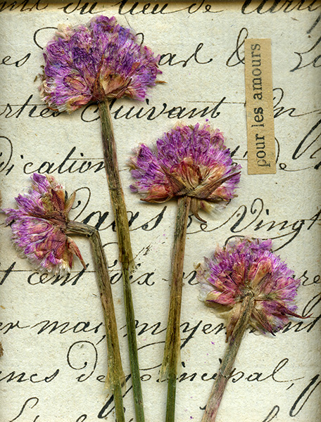 Herbier contemporain Collage de fleurs séchées, gravure, papier et mots chinés.